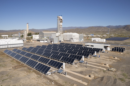 Static solar thermal collector field (252 collectors, 500 m2) of CPC (Compound Parabolic Concentrator type, 1.12x) for thermal energy supply (250 kWt) in low temperature solar thermal desalination applications.