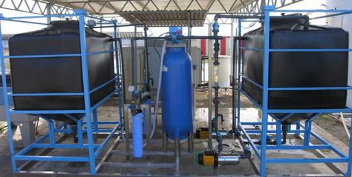 - A raw water pre-treatment plant (Figure 6a) based on physic-chemical processes: a coagulation-flocculation system and filtration step (sand filter and two microfilters of 25 and 5 µm) that allow working with a maximum water flow of 1m3/h.