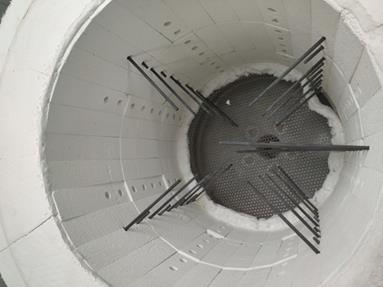 electric power of 15 kW, a charge process with air up to 850 °C is possible. Thermocouples along its