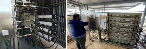 conductivity and flowmeters, and it is designed in a flexible way regarding the interconnection of the units so that FO can be used as a pre-treatment for RO, or NF can be used in combination with FO, and even the FO can be used in PRO mode using the pumping system of the RO unit.