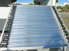 CPC prototype (Figure 1b): it is composed of a 2.1 m2 capture surface unit, with 16 Py-rex glass tubes (32 mm diameter). 25 L total water volume of which 14.24 L are irradiated.