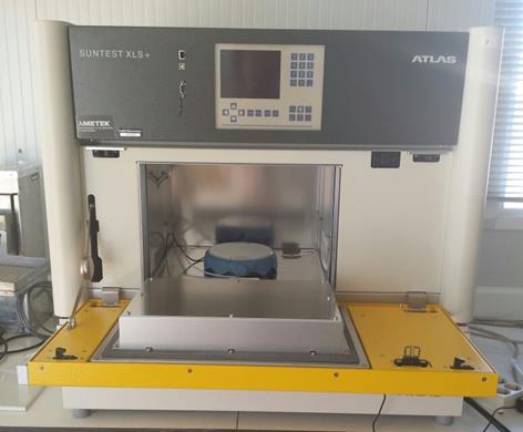 - Two solar simulators XLS+ (Figure 3a) provided with xenon lamps (>290 nm, UV filter) for simulating external solar radiation in small-scale water decontamination and disinfection experiments. In both systems, the radiation intensity can be modified and monitored as well as the temperature (cooling system, SUNCOOL).