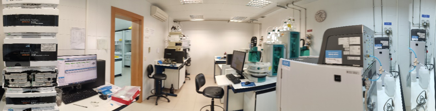 - The chromatography laboratory (23 m2) (Figure 2) is equipped with a complete analytical equipment related with the Chemical Environmental Analysis: 3 liquid chromatographs with diode array detectors (HPLC-UV-DAD and 2 UPLC-UV-DAD, one of them also with a fluorescence detector); 2 ionic chromatographs; 2 total organic carbon (TOC) analyzers (including total nitrogen analyzer) and an automatic Solid Phase Extraction (ASPEC).
