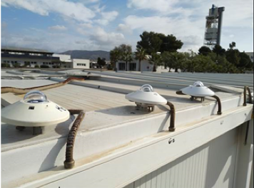 Moreover, the UV and global solar radiation data were also measured and automatically saved throughout the year by a complete monitoring equipment: different pyranometers (Kipp&Zonen, CMP-6 and CUV-5, Figure 5a) to measure global solar radiation (310–2,800 nm) and the global UVA radiation (300–400 nm) at different orientations (horizontal and inclined 37º) (Figure 5b-c). Besides this, two portable radiometers and a spectral spectrophotometer (200 – 1,100 nm; AVANTES) with a double channel are also used to monitor the solar irradiance inside the solar simulators and the solar spectral irradiance at the specific location of the solar tests, respectively.