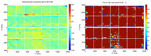 - Deviations of real from theoretical surface on coordinates x, y, z.