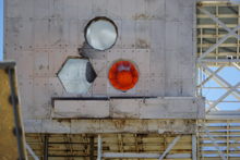 Figure 1. Left: Hydrosol reactor in operation with concentrated solar radiation. Imme-diately after the defocus (the orange glow of the thermal radiation is prominently visi-ble). Right. Main floor
