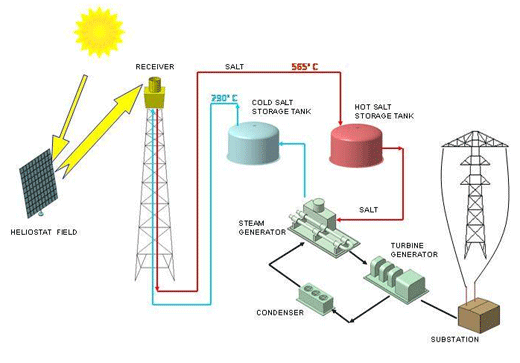 Background: The Project accumulates the experience of the former Solar Two project, but also has design innovations which have come out of work performed together by SENER and the CIEMAT as well as the technical conditions imposed by Spanish legislation on solar thermal power. The initial Solar Tres project was predesigned to meet the requisites of the Spanish legal framework in 2000. During the development of the project, national legislation on renewable energies underwent some changes, and there were also some changes in partners, which led to reorientation of the project and the promoting consortium. Finally, in 2005, the team was consolidated in an entirely European consortium led by SENER. At the same time, SENER and CIEMAT signed an agreement for the development and evaluation of new heliostat and molten salt receiver concepts and a prototype with better thermal performance, able to operate at higher flux without compromising its durability (see project below).